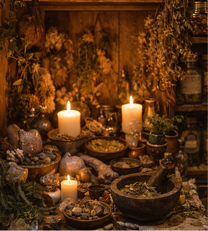 Every blend, oil, and elixir crafted here is more than a product—it’s a portal. Rooted in earth medicine and guided by celestial cycles, our apothecary is designed to help you reconnect with your body’s natural rhythm and the energy of the seasons.